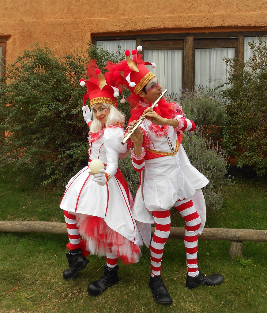 Divertido. musical y alegre el arlequín o la pareja de arlequines reciben y entretienen brindando una cálida bienvenida al evento.